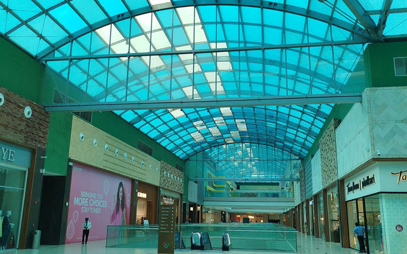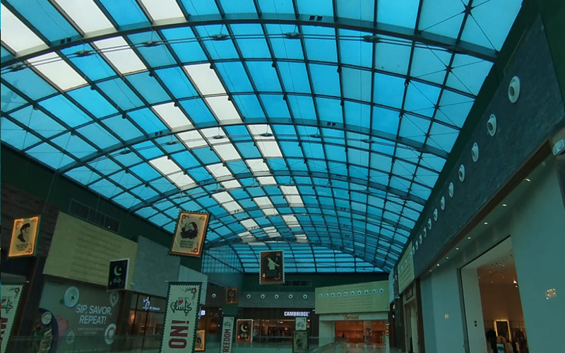 – Installation of double glazed insulated thermal glass on the skylight of the shopping mall.